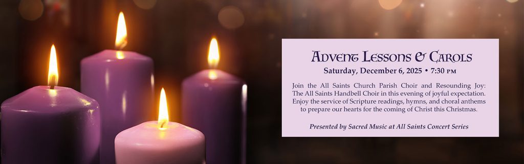 The All Saints Parish Choir presents an evening of Scripture lessons and beloved Advent carols, hymns, and motets to prepare our hearts... Read More >