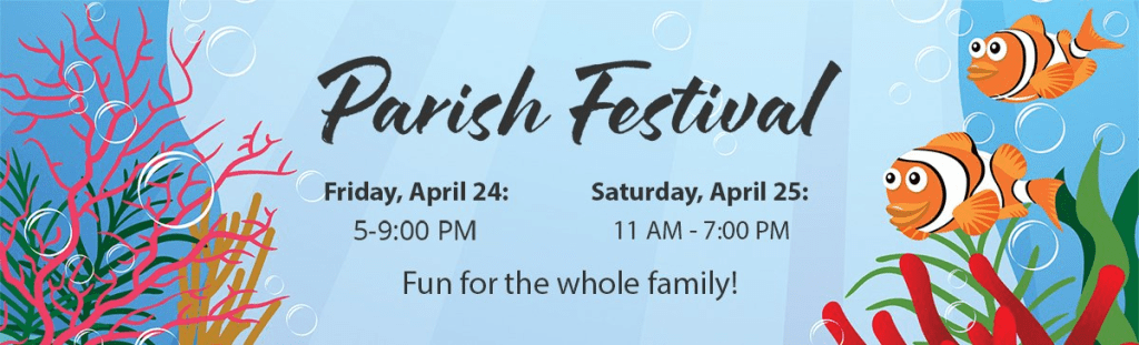 Pre-Sale Tickets for the Parish Festival will be available after Sunday Masses on the weekend of April 11–12. They will also be available in the Parish Office on Mon.-Fri., Apr. 13-17, during normal business hours.